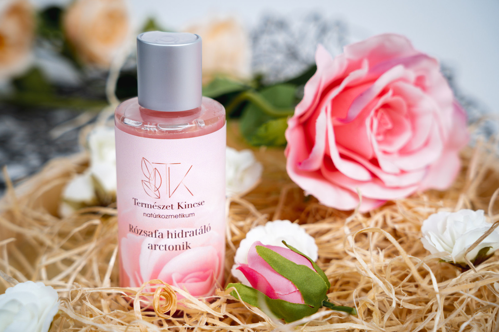 - Damaszkuszi rózsavíz: Regeneráló, ránctalanító hatású, segít helyreállítani a bőr természetes fényét és tónusát.